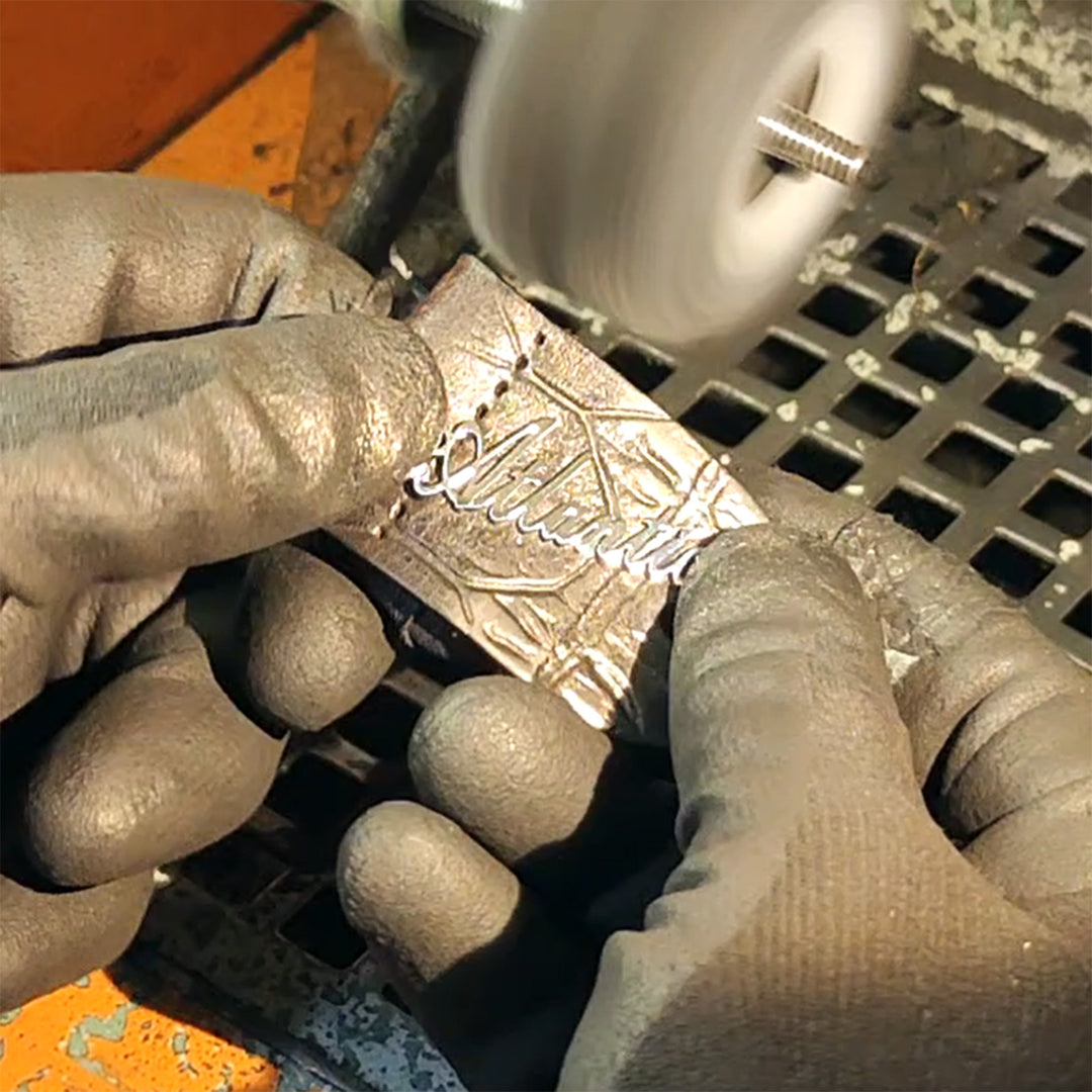 Sobald Dein neues Lieblings-Schmuckstück seine finale Form erreicht hat, wird es aufwendig geschliffen und poliert, damit sein voller Glanz an Deinem Körper zur Geltung kommen kann.