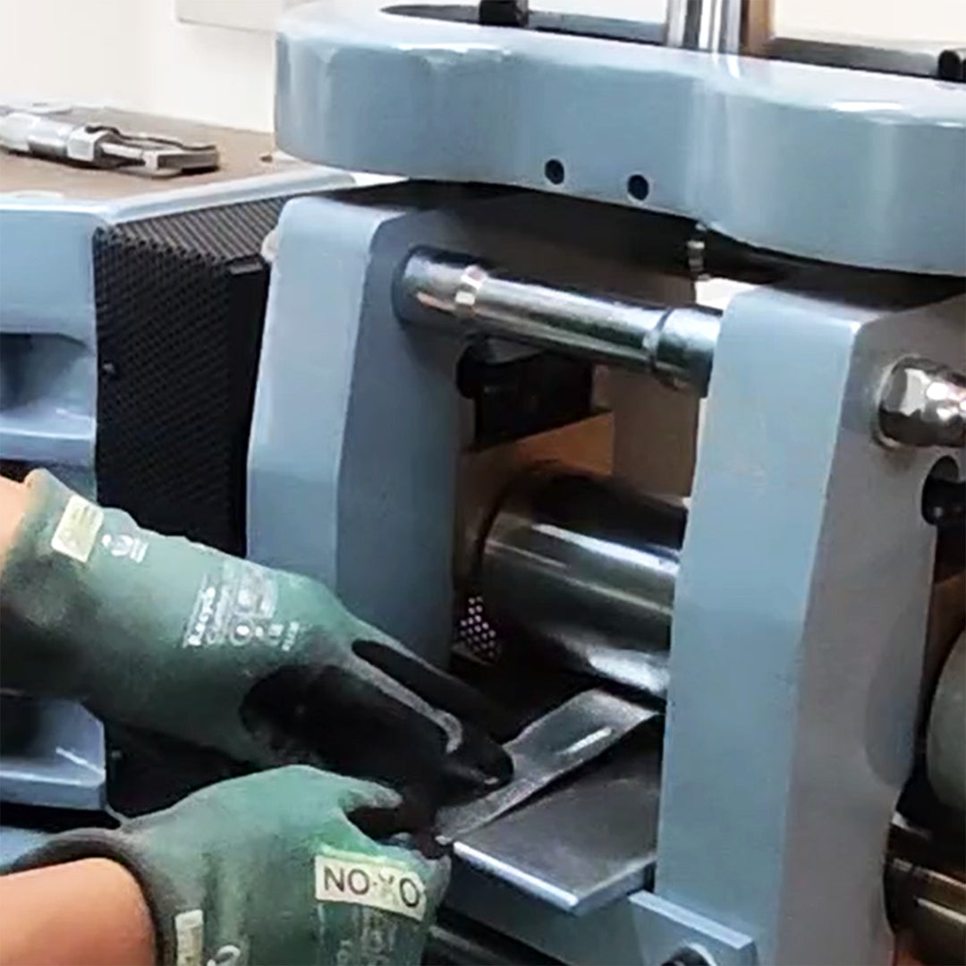 Im zweiten Schritt walzen wir das Edelmetall auf die gewünschte Stärke (Dicke). Hier ist es von besonderer Bedeutung, dass die Stärke perfekt abgestimmt wird, um optisch zu überzeugen und gleichzeitig stabil zu bleiben.