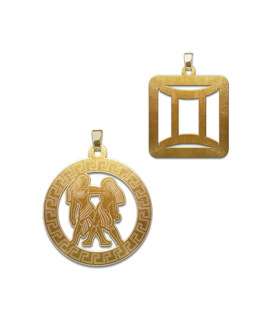Zwillinge-Symbol: Präzise Gravuren fangen die Essenz deines Zeichens ein.